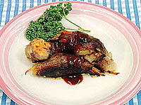 (7) ソースを作り、パセリといっしょに盛り付ける。 |